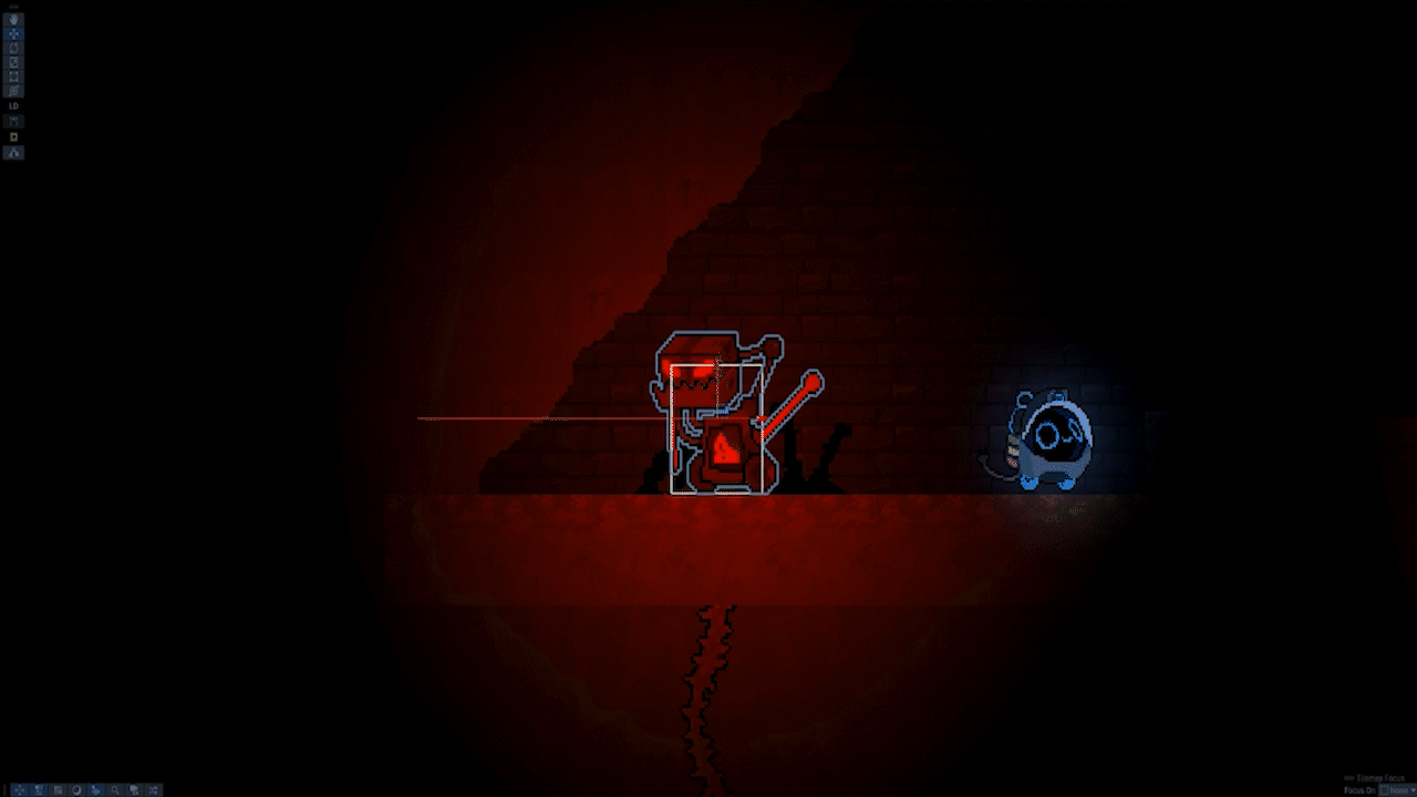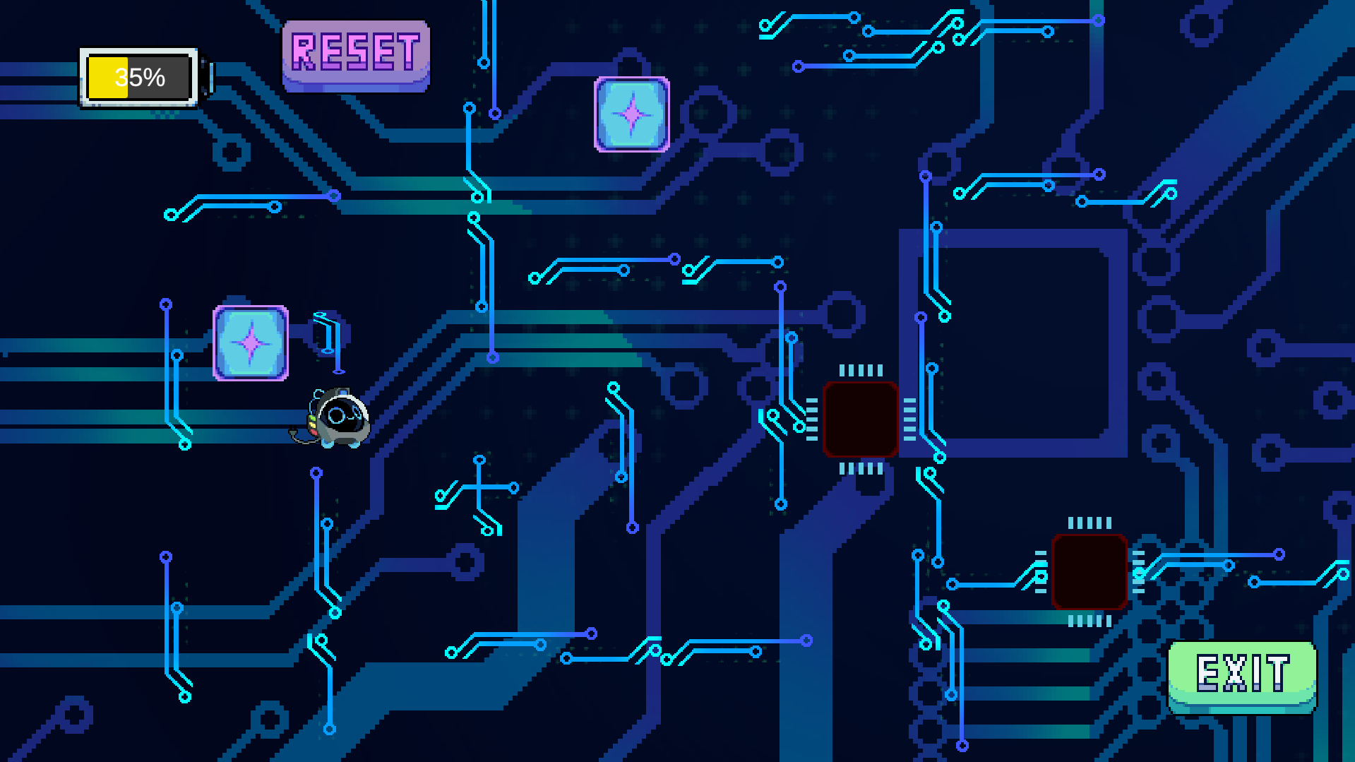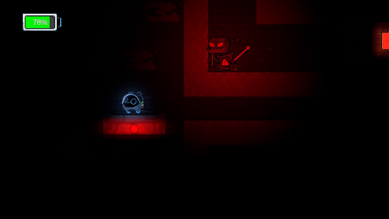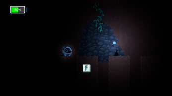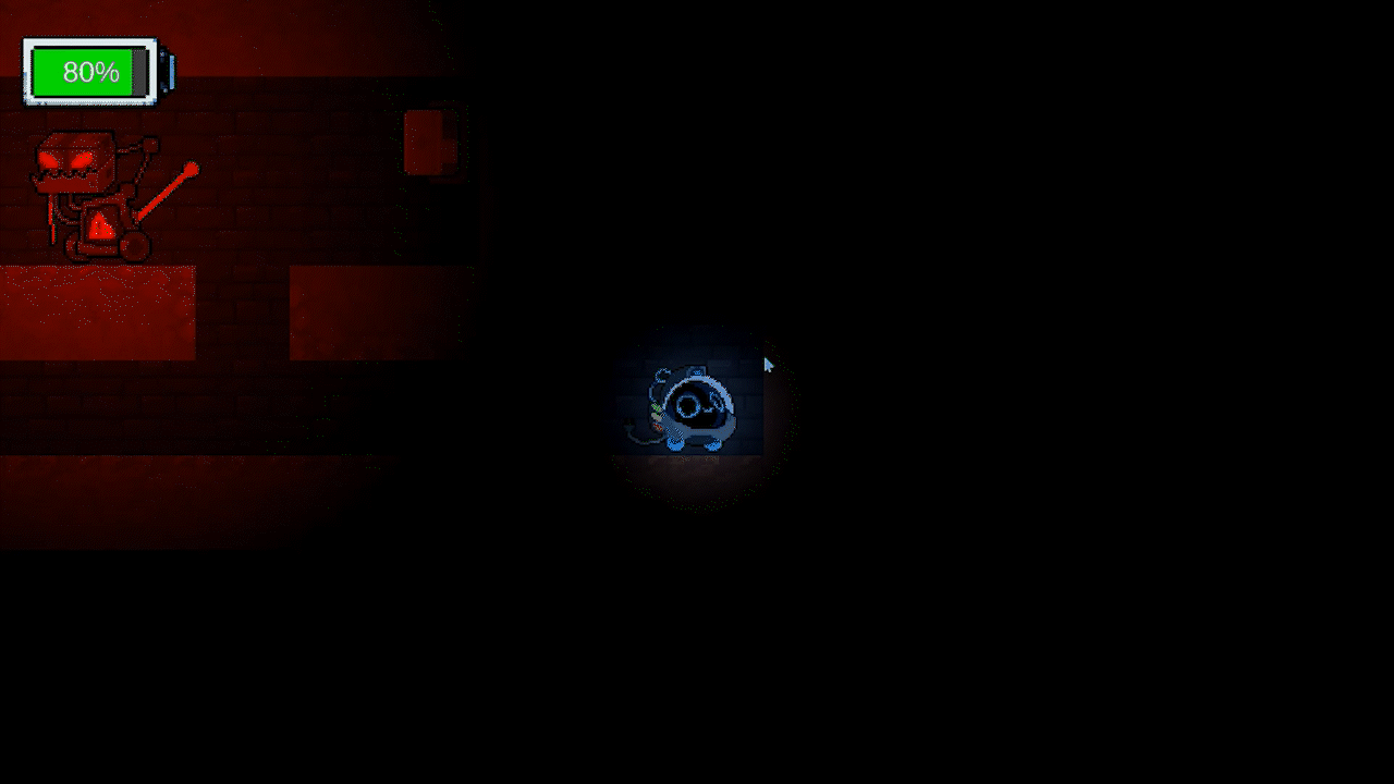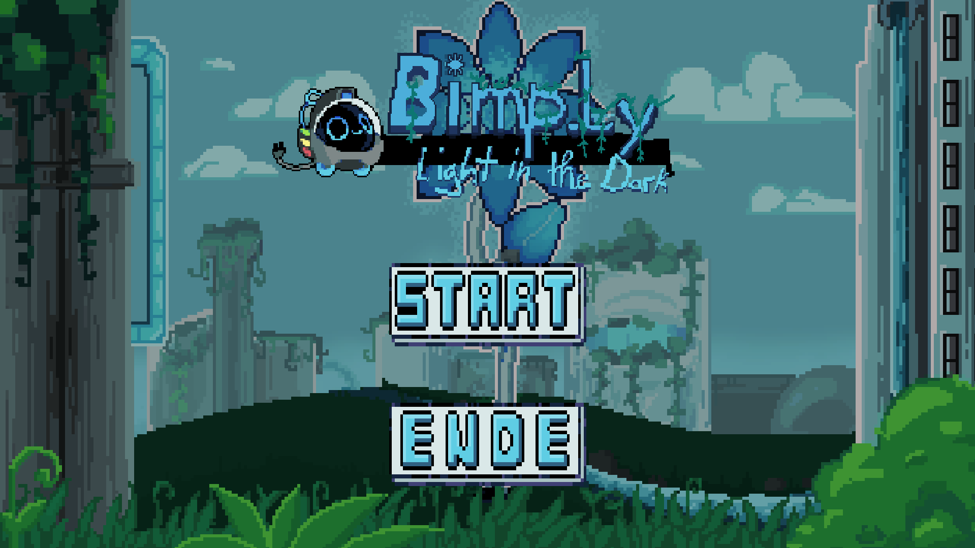 The objective of the game is to navigate the robot Bimp.ly out of a dark cave by using his flashlight and light projectiles, while simultaniously managing his battery state.